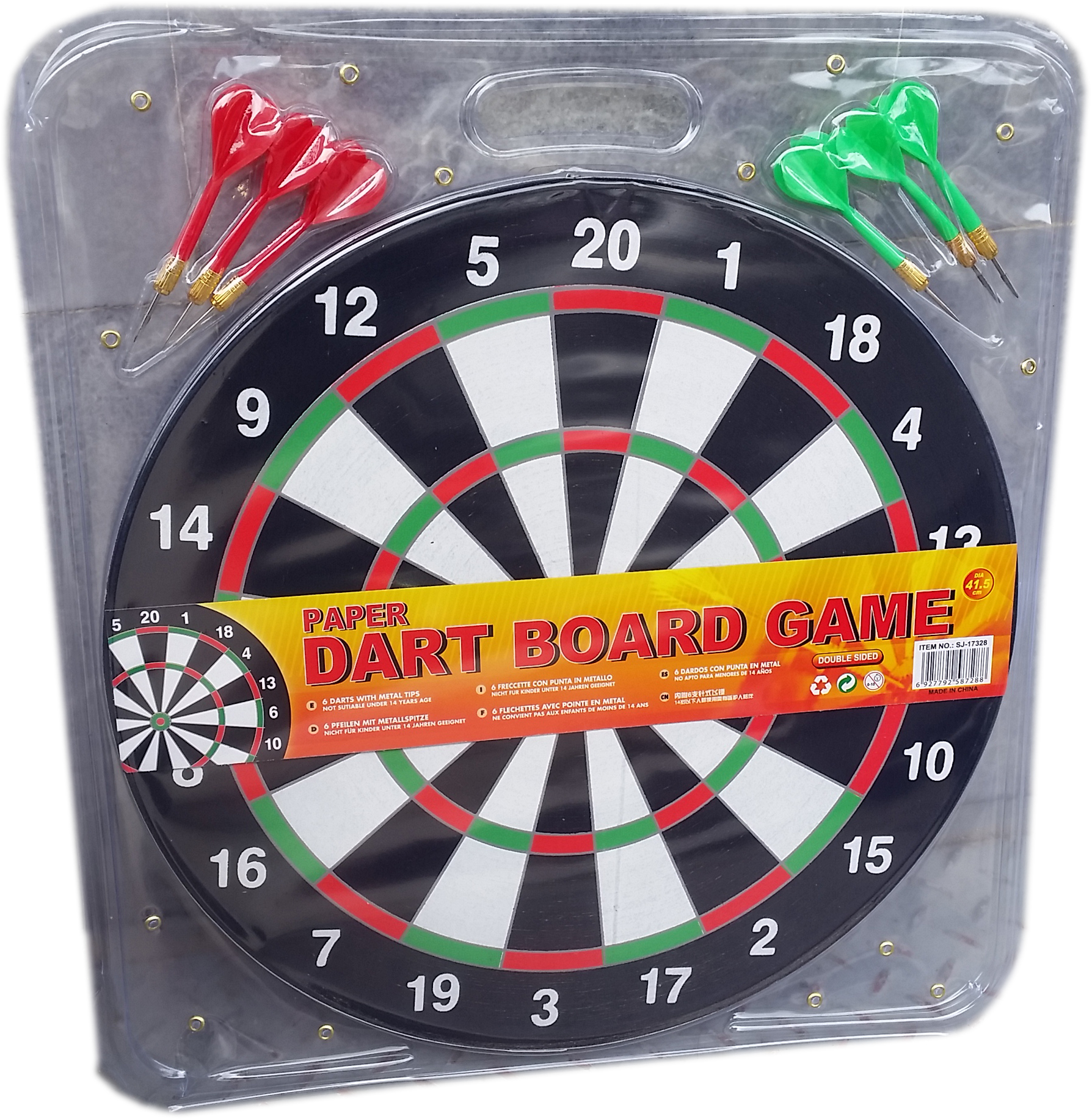 Комплектът Дартс съдържа едно табло за дартс и шест броя стрели.