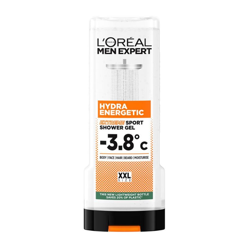 Подобреният Hydra Energetic Extreme Sport от серията L’oreal Men Expert дава усещане за -3,8°C под душа и силен аромат на свежест. Технологията Freshness Activator предлага усещане за прохлада и свежест на кожата. Овлажнява и почиства тялото, лицето, косата и брадата. Тестван под дерматологичен и офталмологичен контрол.