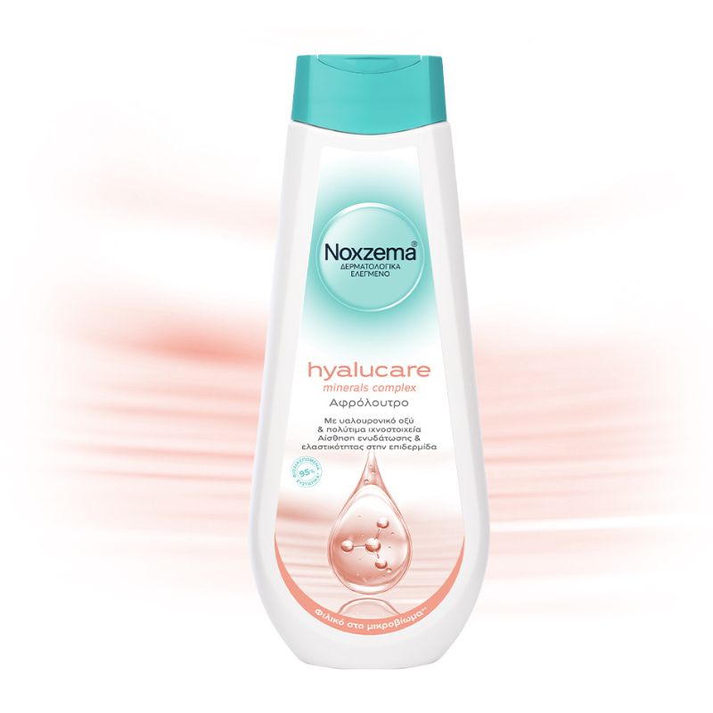 Душ гелът Noxzema Hyalucare с комплекс минерали е специално създаден за ефективно почистване на кожата, като в същото време я предпазва и нежно се грижи. Композицията му с DERMACARE VITAMIN COMPLEX, специален комплекс от овлажняващи съставки и витамини, ефективно допринася за грижата за кожата, като същевременно не нарушава нейния микробиом. Същевременно е обогатен с хиалуронова киселина, известна със способността си да поддържа влажността на кожата и комплекс от ценни микроелементи с магнезий, цинк и мед, които придават усещане за хидратация и еластичност на кожата. С прекрасен аромат, който освежава и завладява сетивата! Дерматологично тестван. Идеален за ежедневна употреба от цялото семейство.
