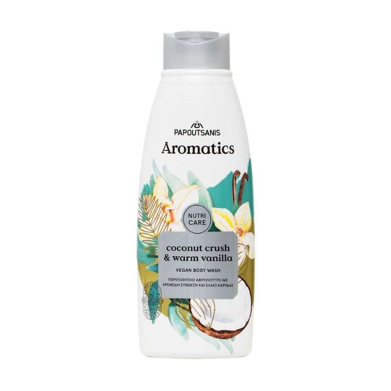 Новият душ гел Aromatics Coconut Crush & Warm Vanilla, със своя кремообразен, богат хидратиращ състав и неустоимата комбинация от аромати на кокос и топла ванилия, ви отвежда на едно мечтано „пътешествие“ на лукс и релаксация. Веганската му формула, обогатена с кокосово масло и Nutricare, комбинация от ниацинамид и витамин Е, придава на кожата ви меко усещане за хидратация.