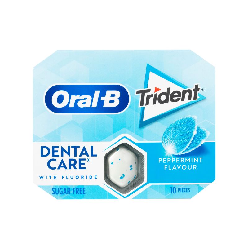 Дъвка Trident ORAL-B Бяла дъвка без захар и вкус на мента. Освежаващ вкус на мента за чист и свеж дъх. Формулата без захар помага за намаляване на риска от кариес. Съдържа FLUOR за допълнителна защита на зъбите. Дъвката може да стимулира производството на слюнка, подпомагайки хигиената на устната кухина