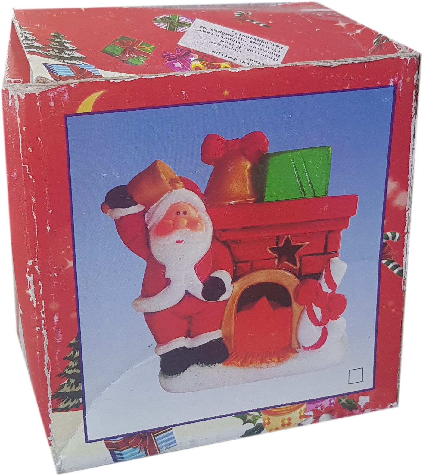 Коледна украса за твоя дом! Сувенирът представлява Дядо Коледа, близо до комина с коледните подаръци.