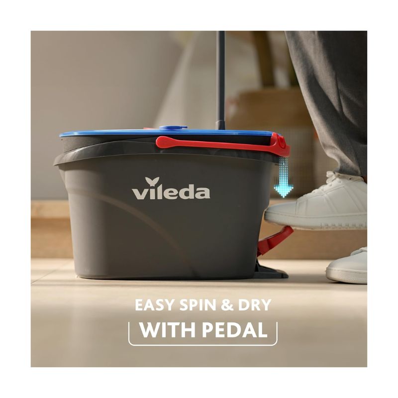 Системата за моп и кофа Vileda H2PrO Spin е най-доброто решение за почистване на вашия дом. Тази иновативна система е с двукамерна технология на кофата, която държи чистата и мръсната вода отделно и гарантира, че винаги почиствате с прясна вода. Главата за моп H2PrO Spin не е съвместима с други дръжки на Turbo моп. Глава за моп от микрофибър за максимална почистваща мощност. Изстискваща се с педал машина за лесно и ефикасно почистване. Глава за моп с триъгълна форма – идеална за ъгли. Резервоарът за чиста вода побира 6 литра вода. Както всички стандартни мопове и кофи Vileda. Размерите на кофата са 49 x 30 x 26 см. Главата за моп може да се пере в пералня и да се използва повторно.