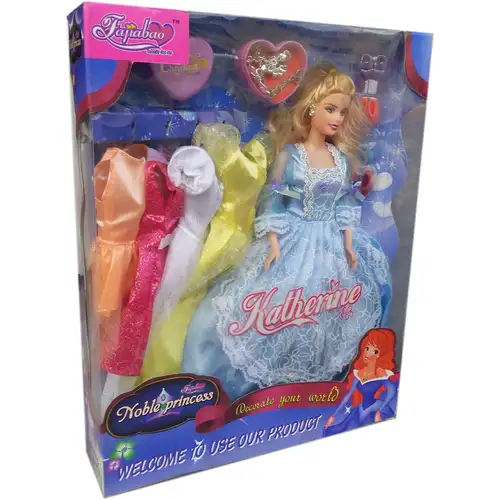 Луксозна кукла Катерина с пет различни вида шармантни рокли, различни видове обувки и кутия за бижута. Детето може многократно и в зависимост от различния повод да я преоблича с различните рокли, обувки и бижута.