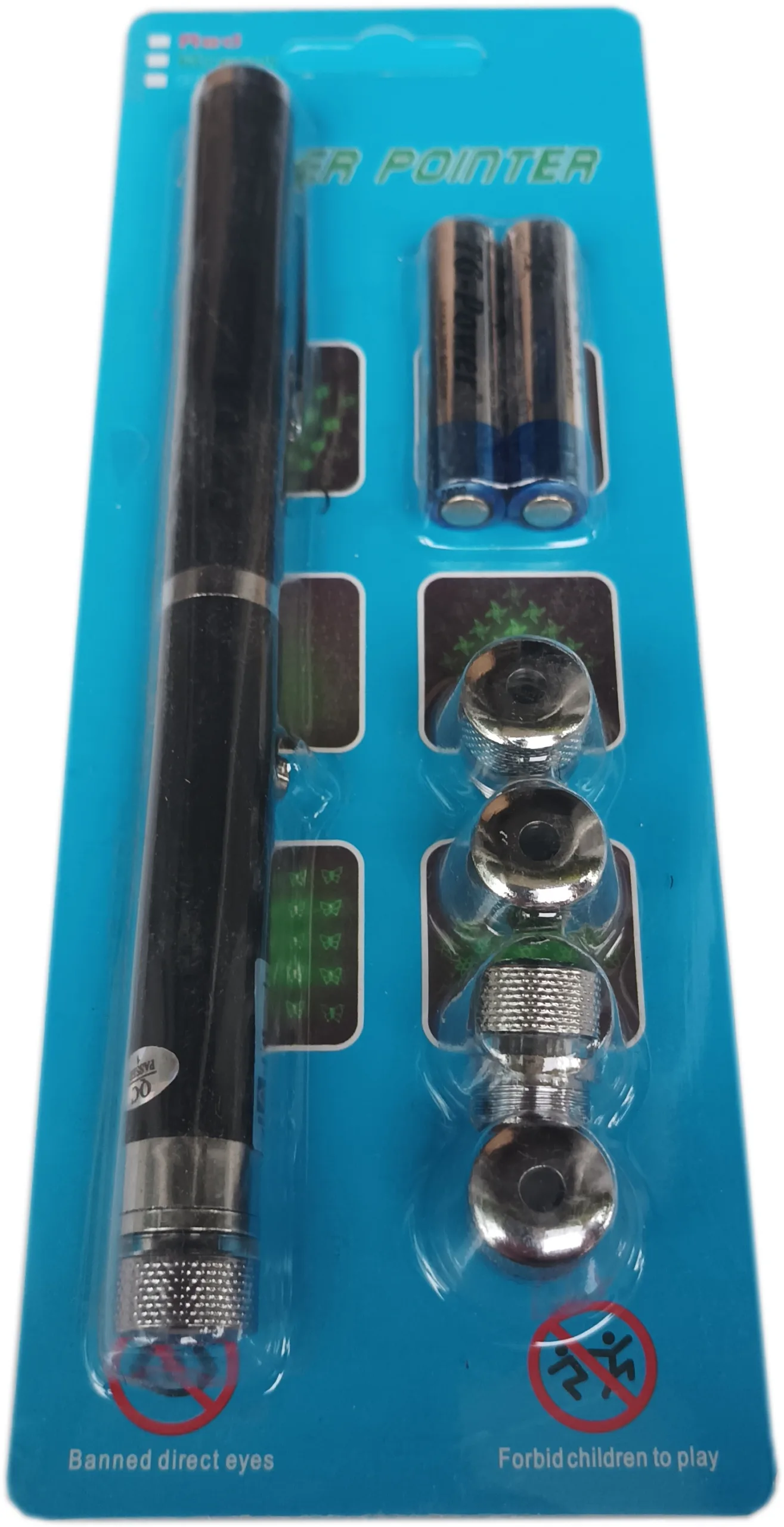 Лазер показалка, комплект с 5 приставки и батерии, мощен.