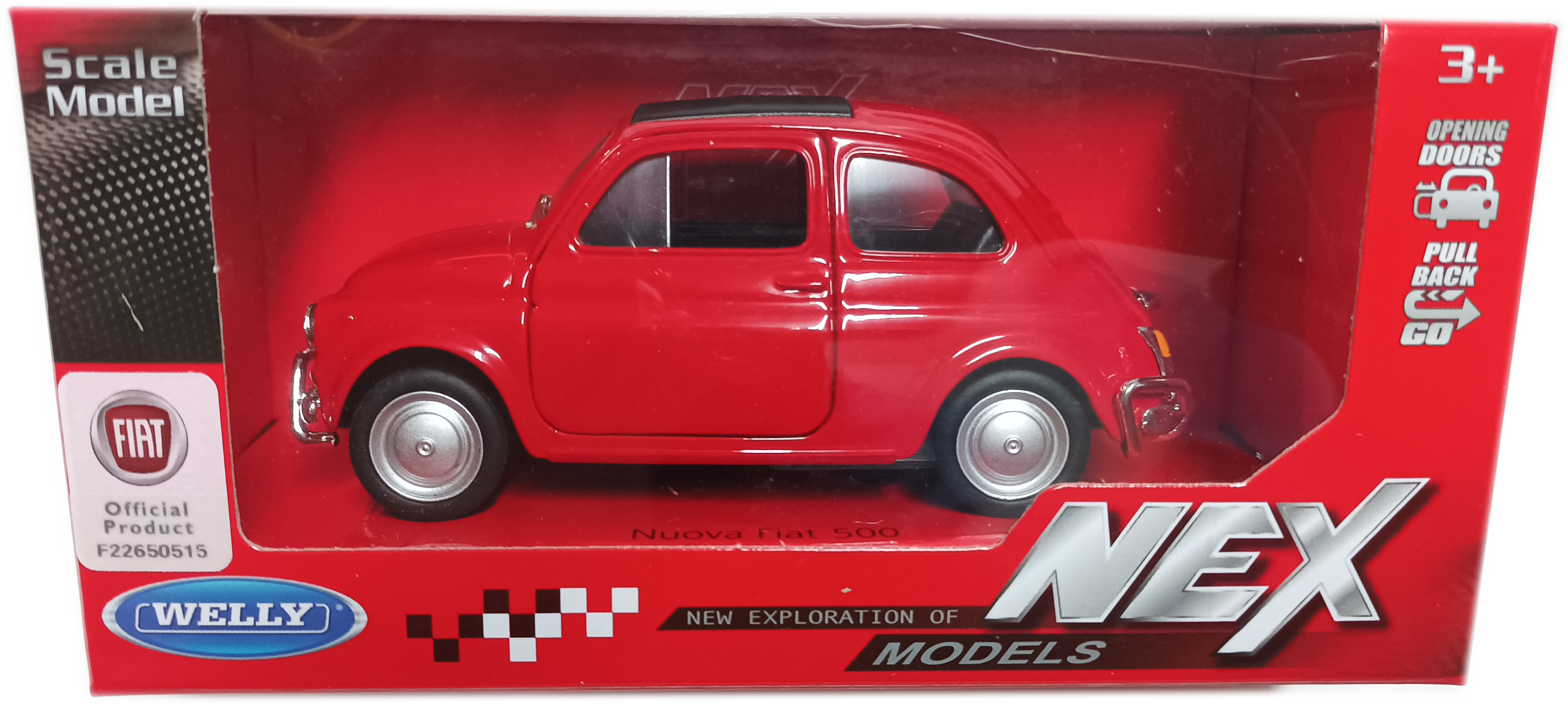 Детската играчка метална кола с отварящи се врати Фиат Нуова Nuova fiat 500 Welly е с метални и пластмасови части. Металната кола с отварящи се врати Фиат Нуова Nuova fiat 500 Welly естествено има и отварящи се врати.