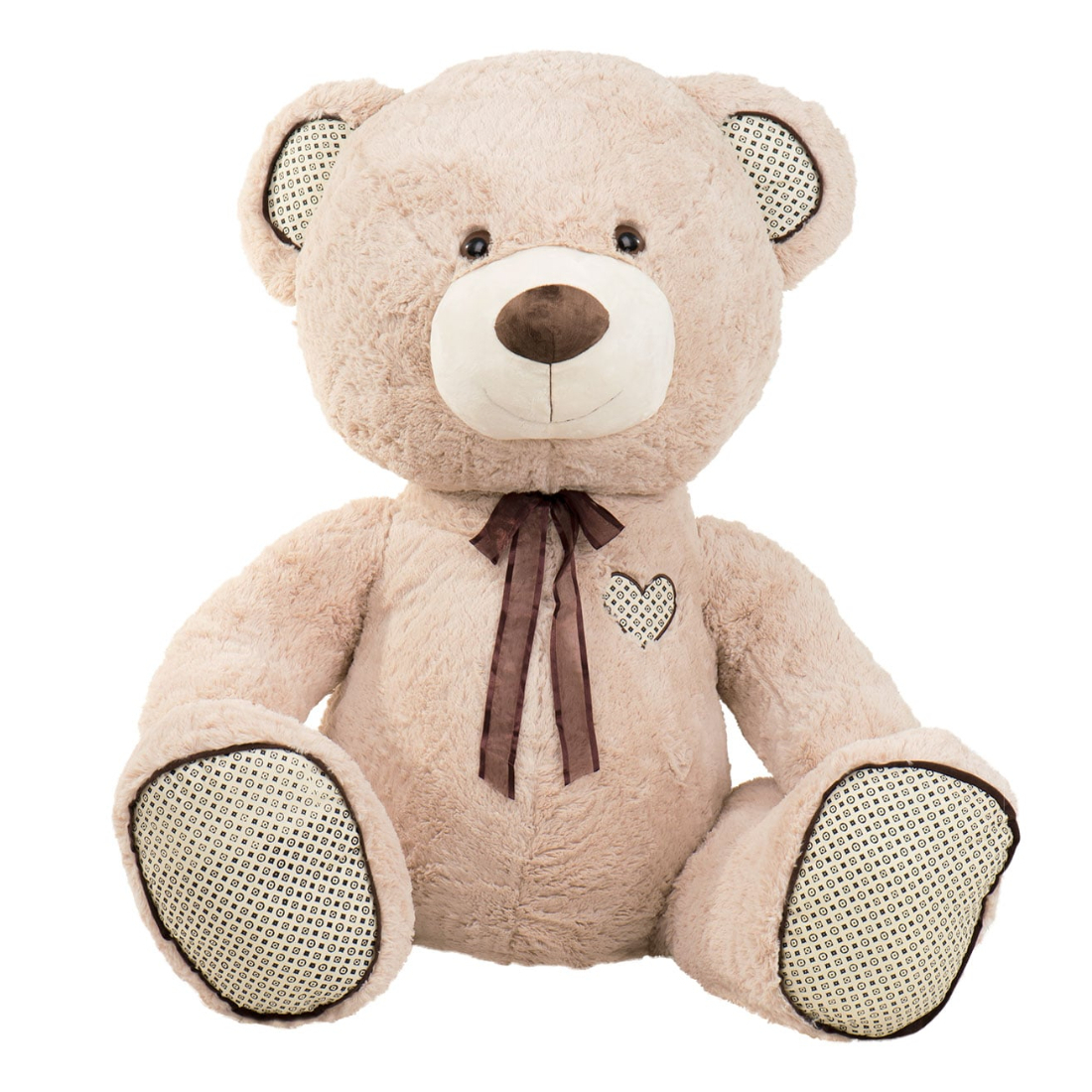 Плюшеният мечок е впечатляващ по своите размери и визия. Глитерната апликация на лапите и ушите, и малко сърчице са стилни и изискани и допълват линията на дизай на играчката. Изработен от мек и изключително приятен на допир плюш мечокът е страхотен подарък както за малки, така и за големи.