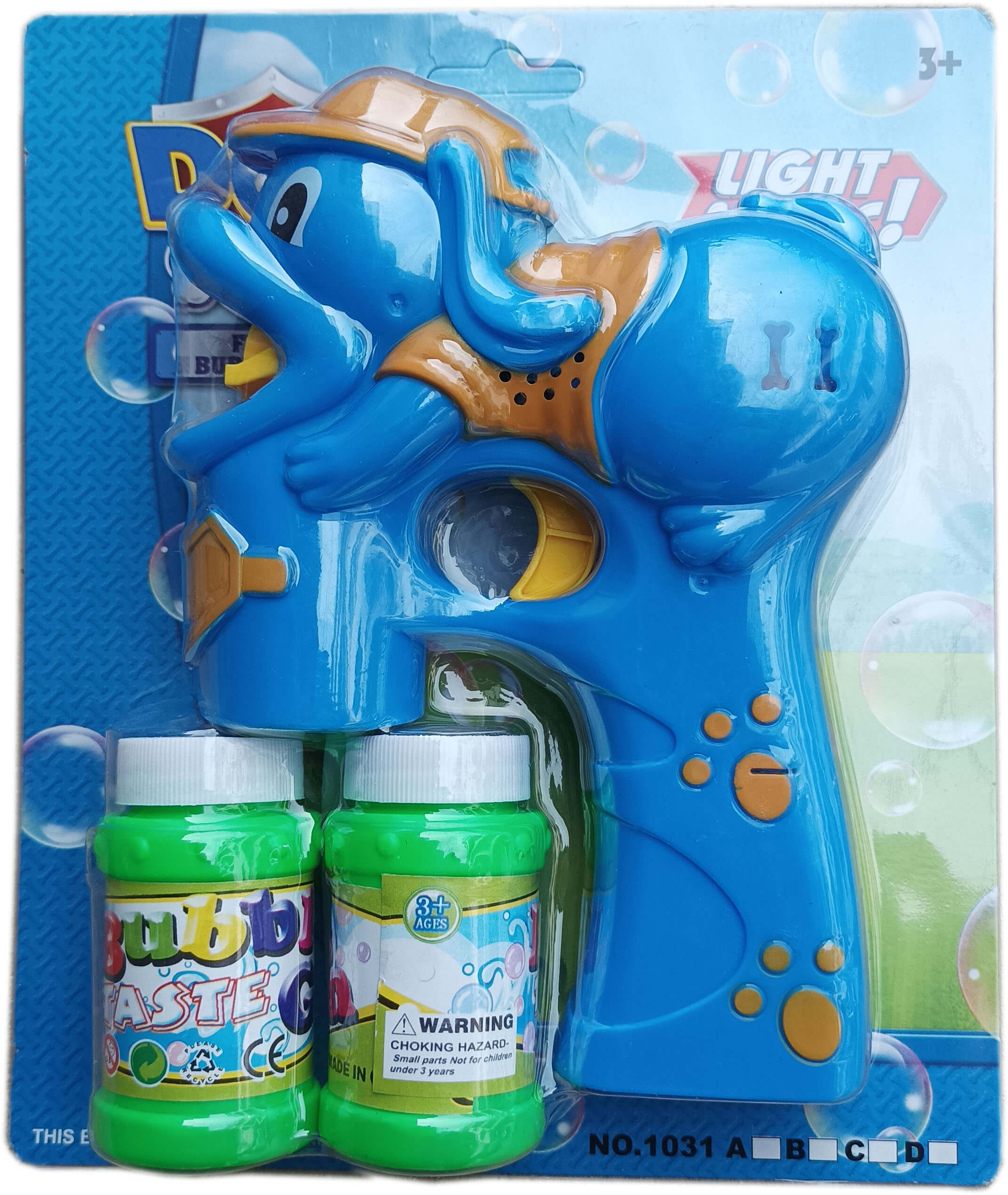 Комплектът Воден пистолет за сапунени мехури с форма и оцветяване на Далматинец Пес Патрул Paw Patrol съдържа един пистолет за водни балони и два резервоара със специална течност за тях.