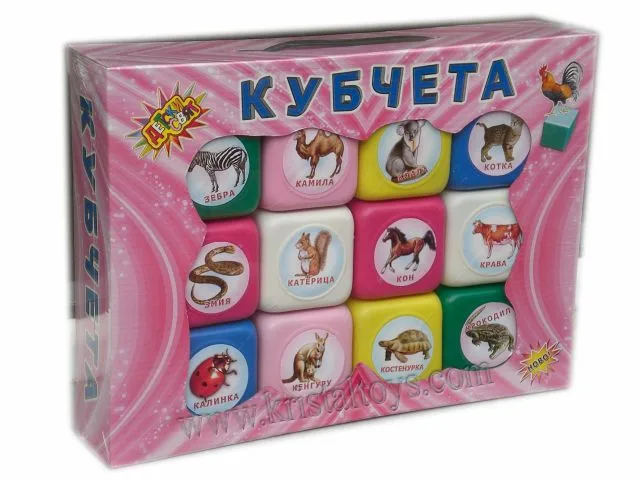 Съдържание на комплекта – 12 броя пластмасови кубчета с различни картинки.