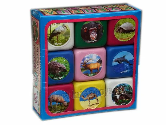 Съдържание на комплекта – 9 броя пластмасови кубчета с различни картинки.