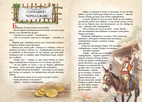 В това луксозно томче са събрани най-забавните приказки за обичания шегобиец Хитър Петър. Осмивайки Настрадин Ходжа, глупавия чорбаджия и ненаситния гостилничар, Сава Попов ни припомня, че чистото сърце на сиромаха тежи повече и от торба с жълтици. Красивите илюстрации ще поведат децата към пъстрия свят на българския фолклор, където ще открият не само духовити случки, но и вековната мъдрост на предците ни.