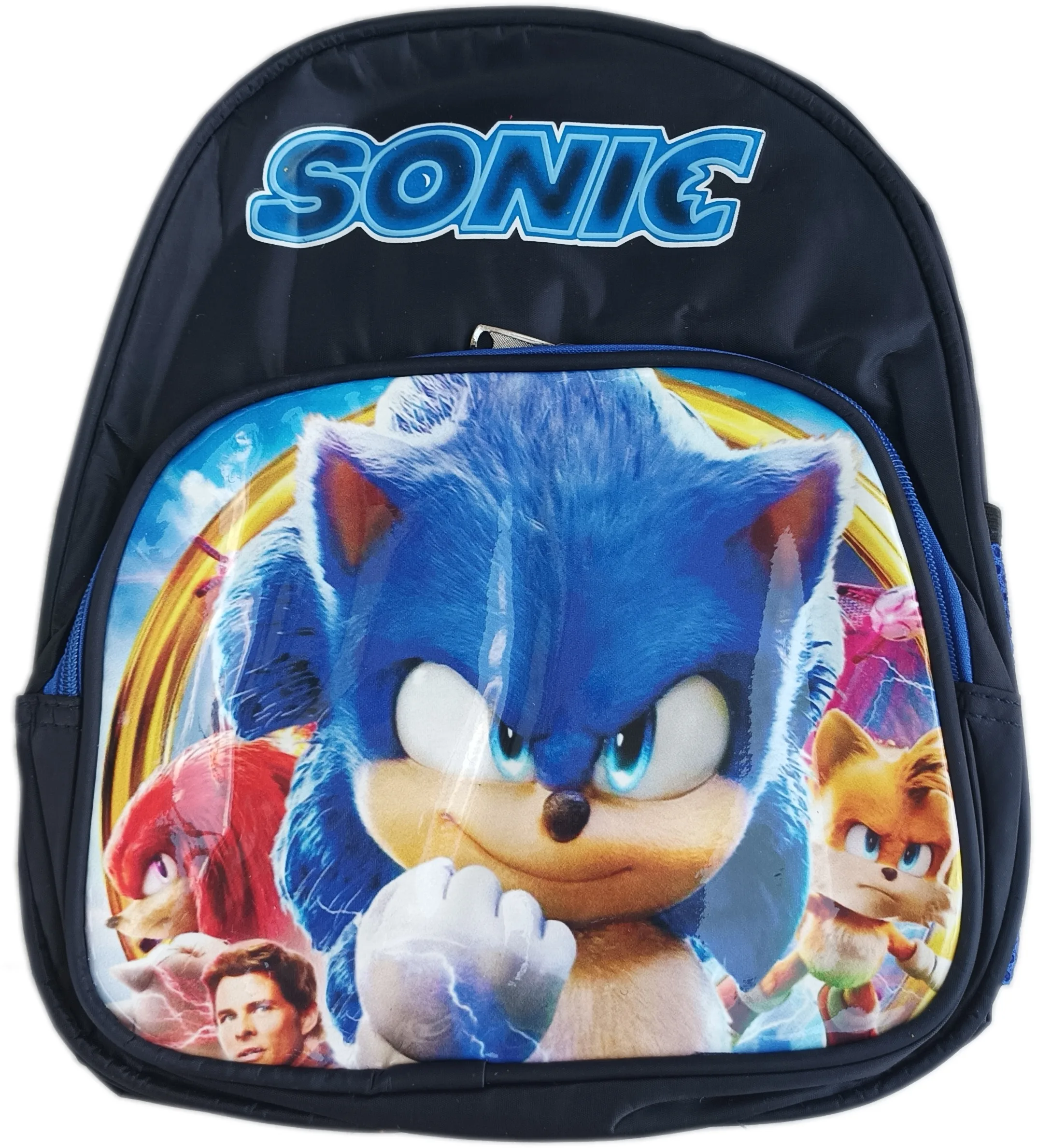 Раница за детска градина с картинка – Соник Sonic, синя е с мек гръб и презрамки. Раницата има един голям раздел, един преден джоб с цип и два странични.