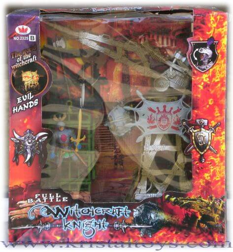Комплект за момчета съдържащ рицар, оръжия, бойна кула и клетка.