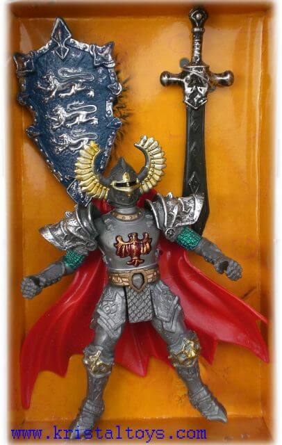 ⚔️ Един воин в доспехи и уникален шлем: Рицарят е облечен в детайлни доспехи и носи шлем, който му придава величествен и реалистичен вид.