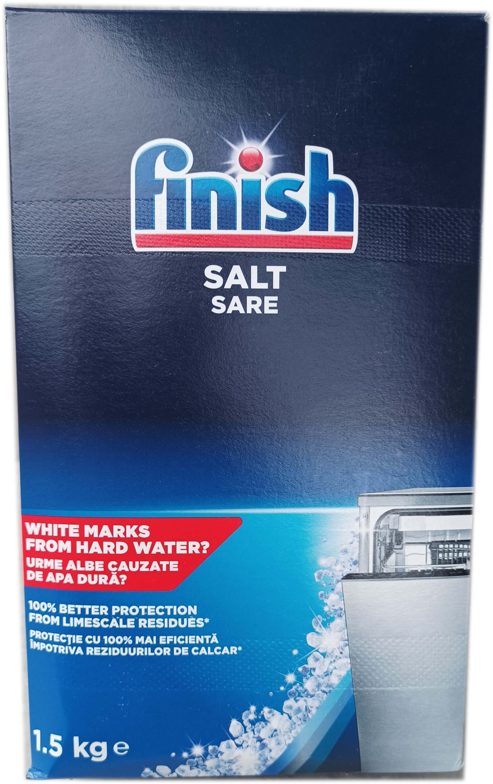 Солта за съдомиялни Finish е създадена, за да омекотява водата и да предотвратява отлагането на котлен камък. По този начин тя подобрява ефективността на почистващия препарат и предпазва както съдомиялната, така и съдовете.