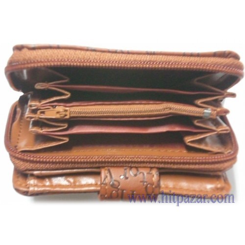 Вътре портмонето е с четири раздела плюс един с цип и място за кредитни карти и визитни картички. Отстрани отделно има обособен раздел вътре с голям джоб, с раздел с цип и място за кредитни карти и визитки, който се закочава отгоре с копче. Предлага се в различни цветове.