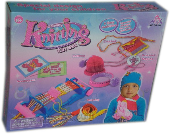Детският образователен комплект Домашен труд и умения развива детските умения в пет области – плетене, тъкане, плетене на една кука, бродиране и правене на гривни и украшения.
