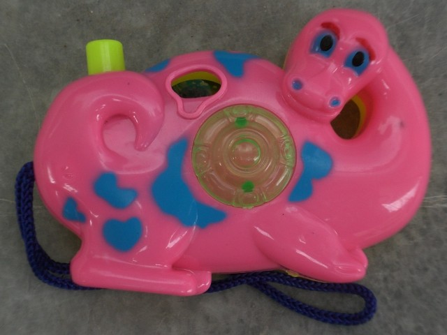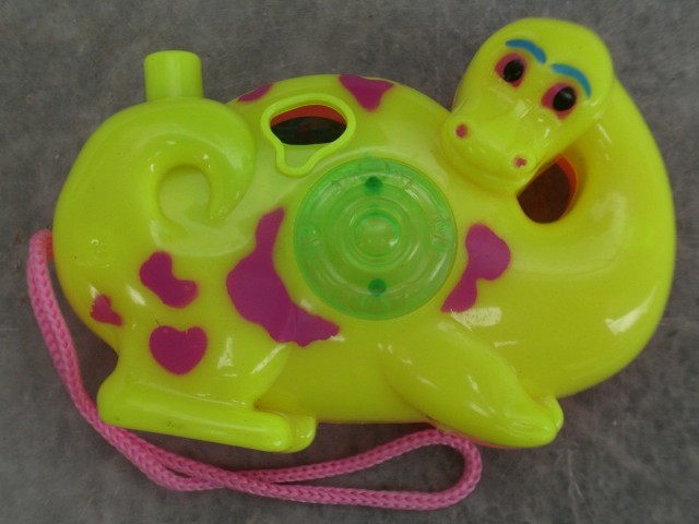 Детският фотоапарат е с облик на животинче. Чрез натискане на бутон, фотоапаратът сменя картинки, които са вградени в него.