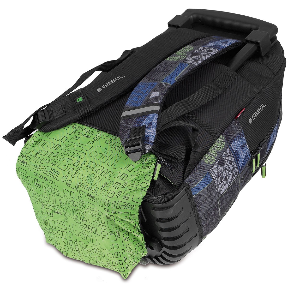 Раницата има и допълнителен плат за покриване на колелата, когато тя се носи на гръб.