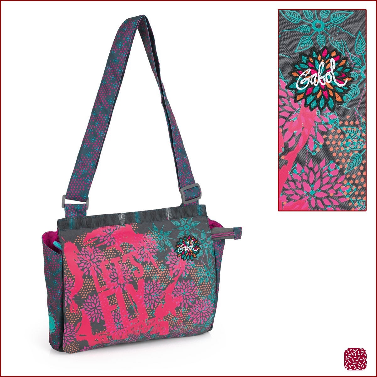 Gabol – Funky чанта е с едно отделение и дълга регулируема дръжка.