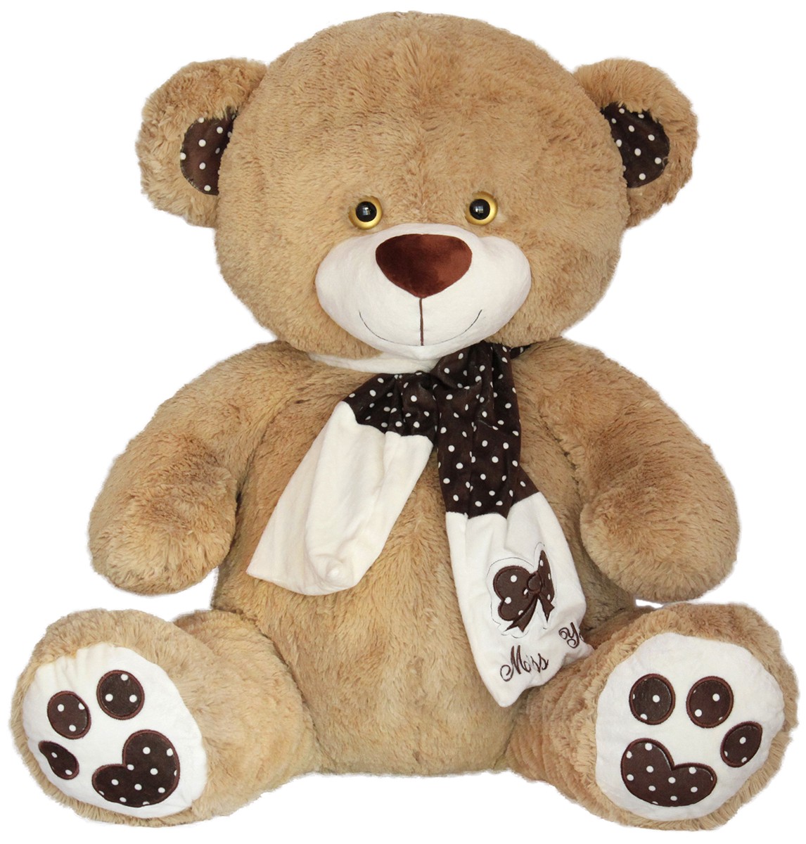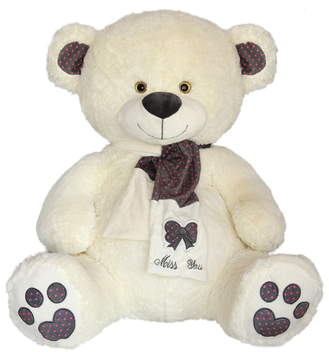 Голямо Мече с шал на точки и надпис „Липсваш ми“, което е почти с размерите на получаващия го!