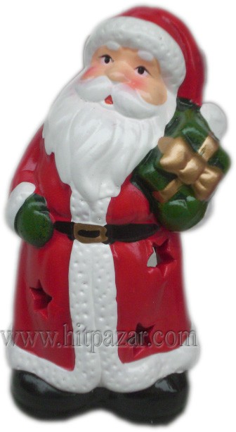 Керамична фигура на Дядо Коледа със свещ.