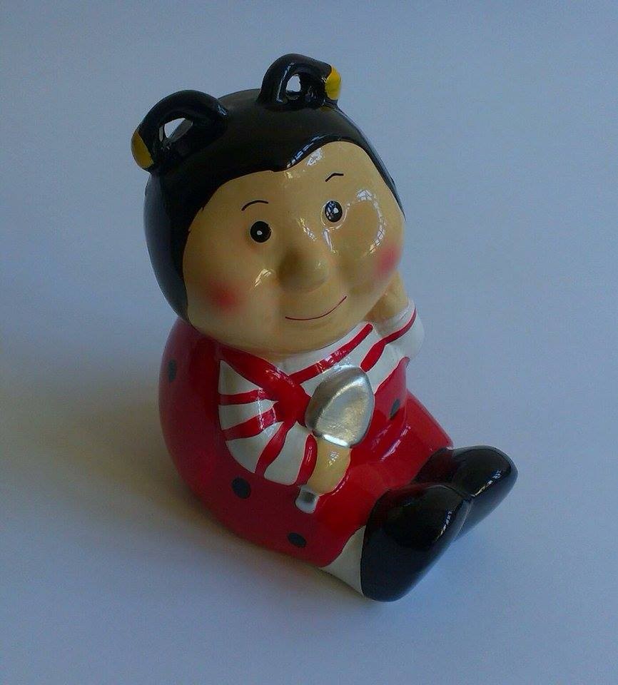 Керамичната касичка е цветна и е с формата на калинка. Керамична касичка – калинка е много сладка и носеща весело настроение.