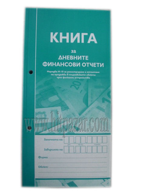 Книгата за дневните финансови отчети отговаря на изискванията на наредба Н – 18 за регистриране и отчитане на продажби в търговските обекти чрез фискални устройства.