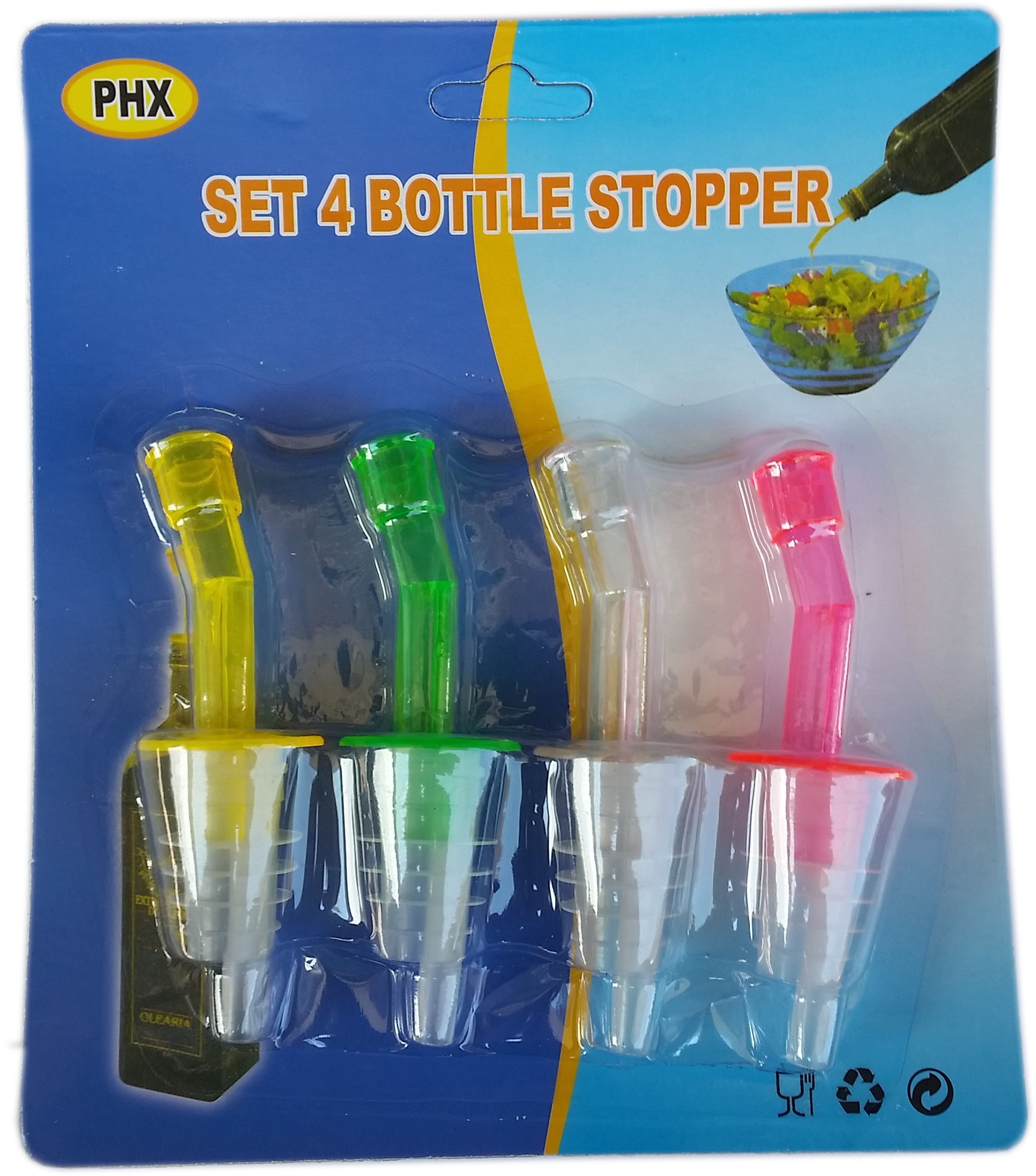 Комплектът накрайник за бутилка четири броя включва четири накрайника различни цветове. Тези накрайници са много подходящи за изпалзване в домакинството, а и в ресторантьорството и различни видове барове и други питейни заведения.