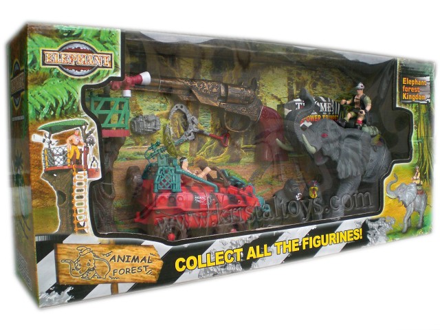 Комплектът В царството на слоновете е една чудесна занимателна играчка. Чрез него детето може да възпроизведе най-различни сцени в които участват животни от джунглата. Става въпрос за големия слон, шимпанзета и горили. В комплекта също така има включен джип на природозащитниците, наблюдателна кула и пистолет. Слонът в този комплект е опитомен и позволява да бъде язден.