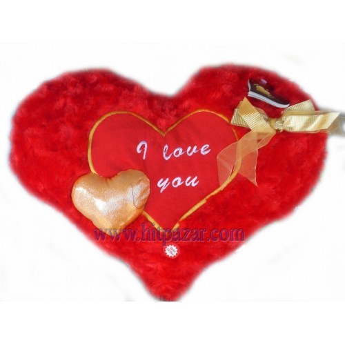 Плюшено сърце с панделка и златно сърце е изработено от висококачествен приятен на допир плюш. В единия си край има златно сърце, а в другия златна панделка. Има апликация на сърце с надпис I love you! Сърцето е музикално, при натиск говори.
