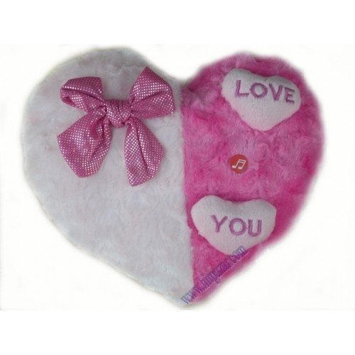 Плюшеното сърце с панделка е изработено от висококачествен среднокосмест плюш. При натиск говори. Произнася I love you baby! На него има две релефни сърца с бродерии с послание – Love you! L лявата горна част има панделка.