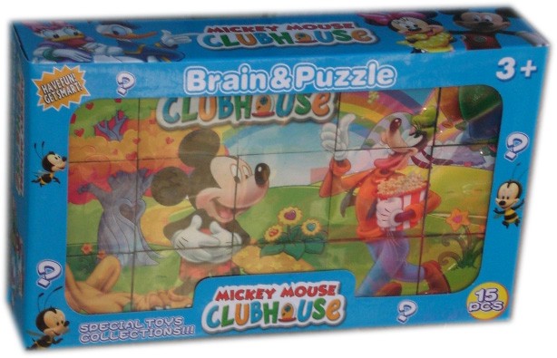 Комплектът занимателни кубчета с картинки Мики Маус съдържа 15 броя кубчета.